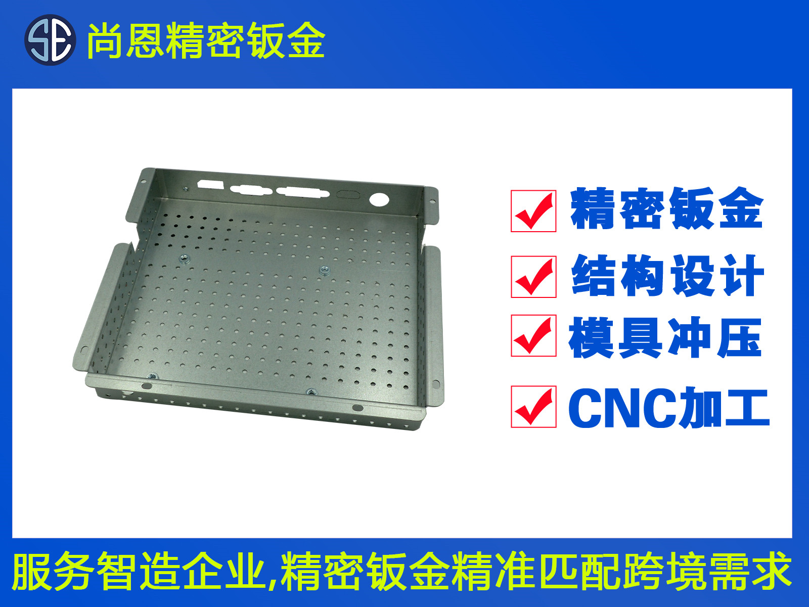 尚恩精密鈑金專注于高精度/高難度的精密鈑金件加工,包括各類精密鈑金結構件、精密異形鈑金件精密鈑金機箱、來圖定制、來樣定制、鈑金打樣及批量生產等,產品被廣泛應用于眾多領域。如:醫療設備領域,金融器具領域,打印復印機領域,5G通訊機箱領域,智能家居家電,新能源汽車及設備,電視機后背板,自動化機器人,車載影音及導航,各類彈片和屏蔽罩等,擅長制作各類異形凸包及特殊復雜形狀的鈑金件和結構件,產品被眾多客戶暢銷世界各地并得到認可與好評。