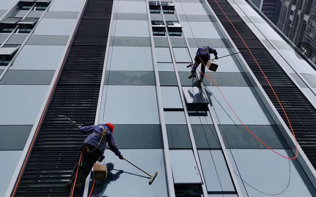 成都客戶大樓鋼化玻璃外墻清洗服務