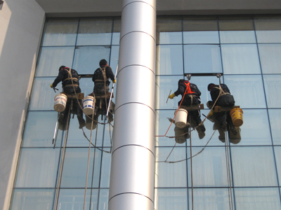 高層建筑物的外表容易附著灰塵,為保持建筑物處表的清潔美觀,需要我們提供定期在室外高空中通過使用吊籃、吊板、升降車等配合清潔工具及專業藥劑進行的清洗服務。外墻清洗收費根據建筑材料及高度按平米收費,一般在清洗工作驗收合格后一周內結帳。 我公司的外墻清洗隊經市勞動局審批通過,所有員工全部取得了上崗合格證 ,我們的隊伍經過多年的工作實踐積累了大量的工作經驗,為您提供安全及質量的保障歡所以選擇成都清潔公司潔爾亮公司。